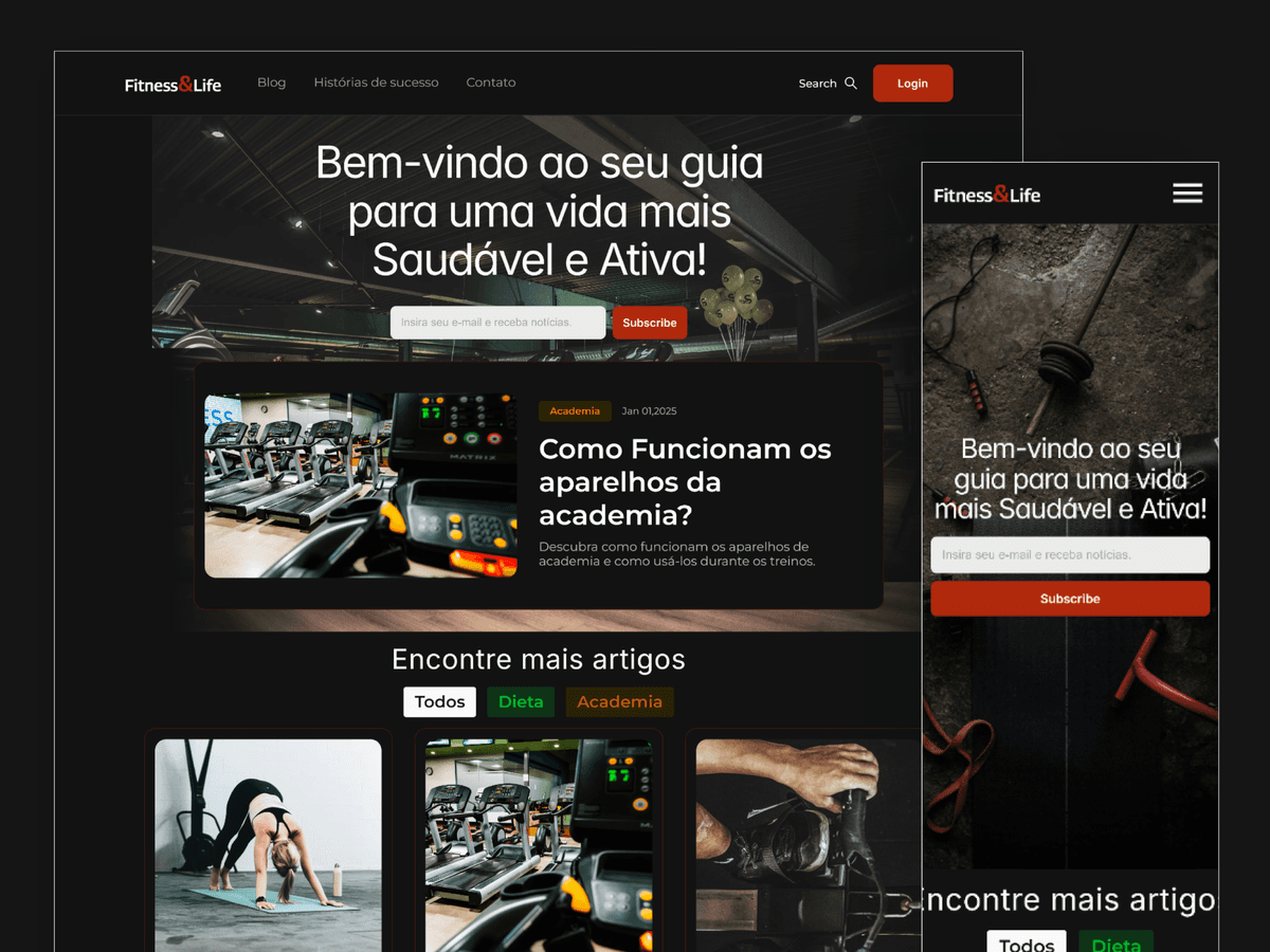 Portal de saúde e bem-estar desenvolvido no Framer com foco em UX/UI, tipografia Inter e arquitetura de conteúdo pensada para engajamento e navegação intuitiva.
