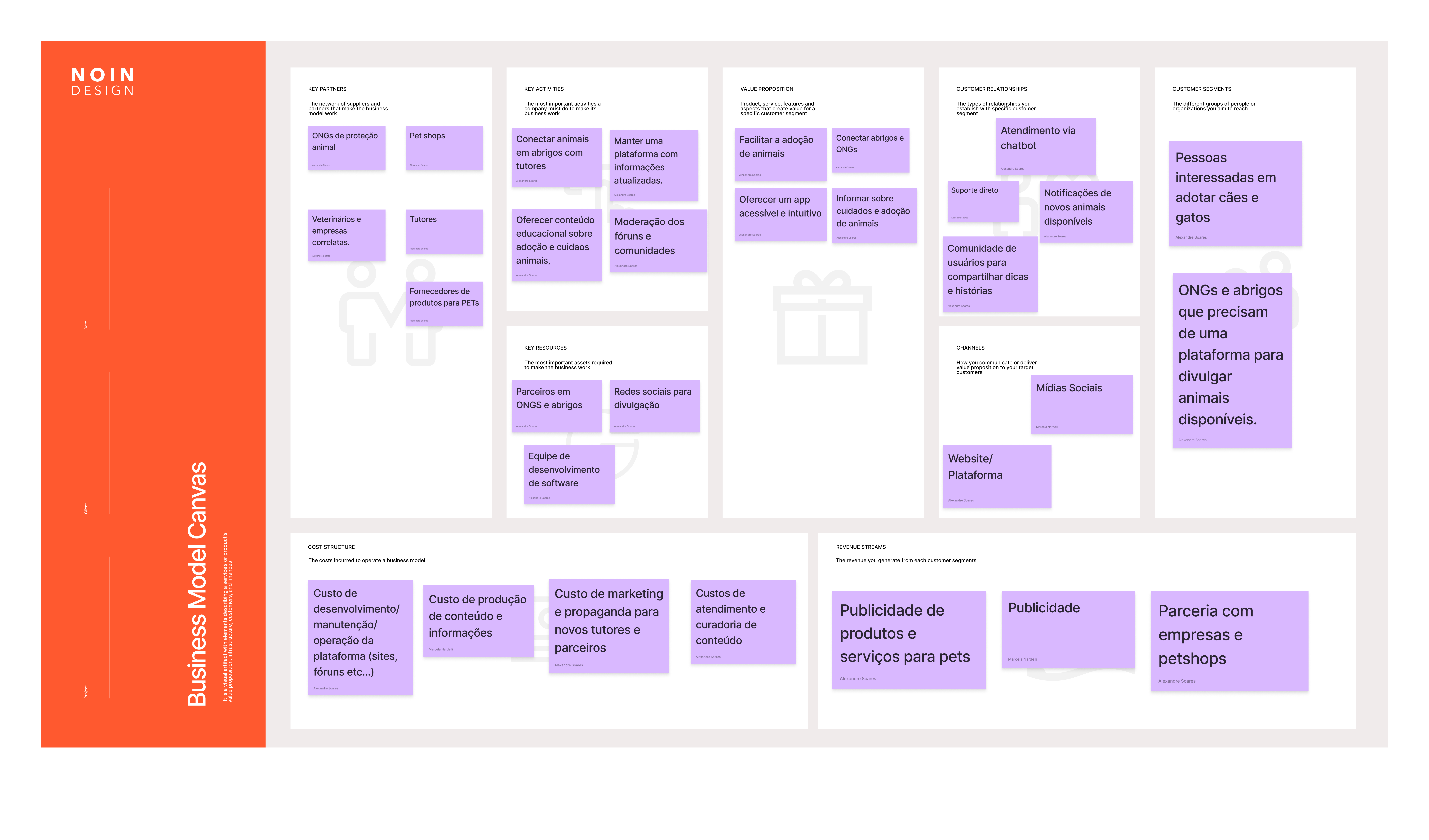 Business Model Canvas — parceiros, atividades-chave, segmentos e fontes de receita