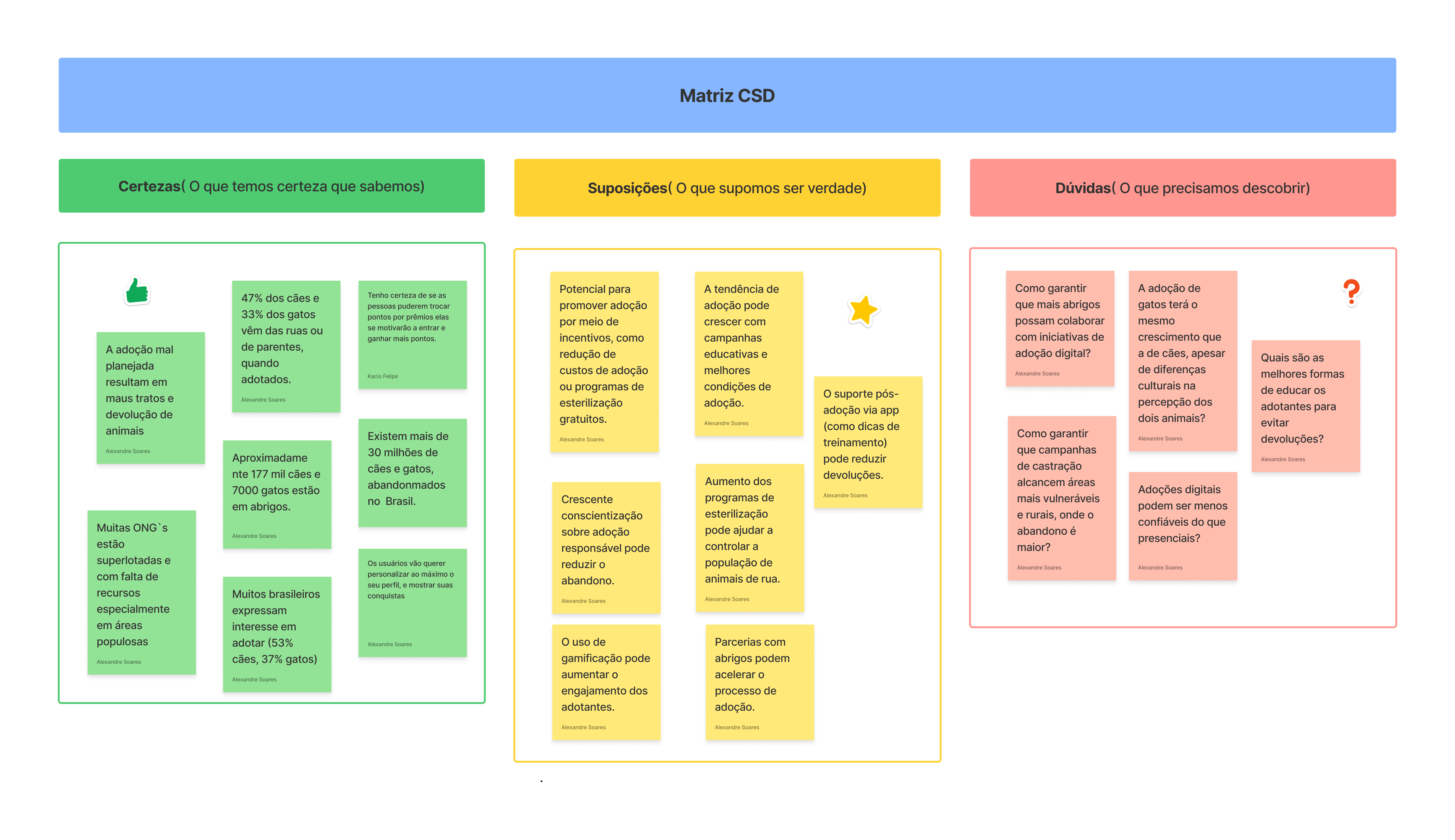 Matriz CSD — certezas, suposições e dúvidas levantadas na fase de pesquisa