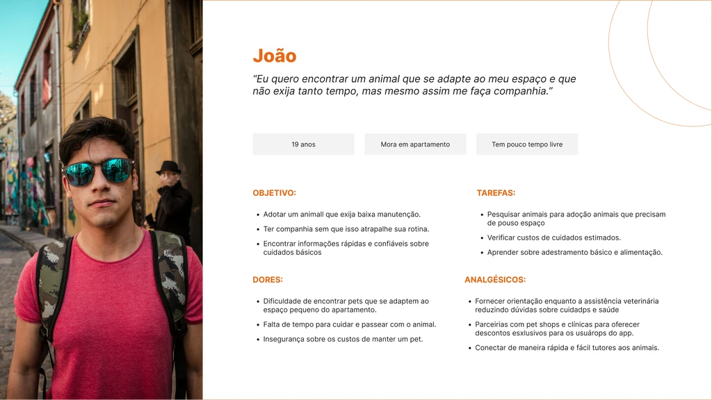 Persona João — 19 anos, mora em apartamento, busca animal de baixa manutenção para companhia