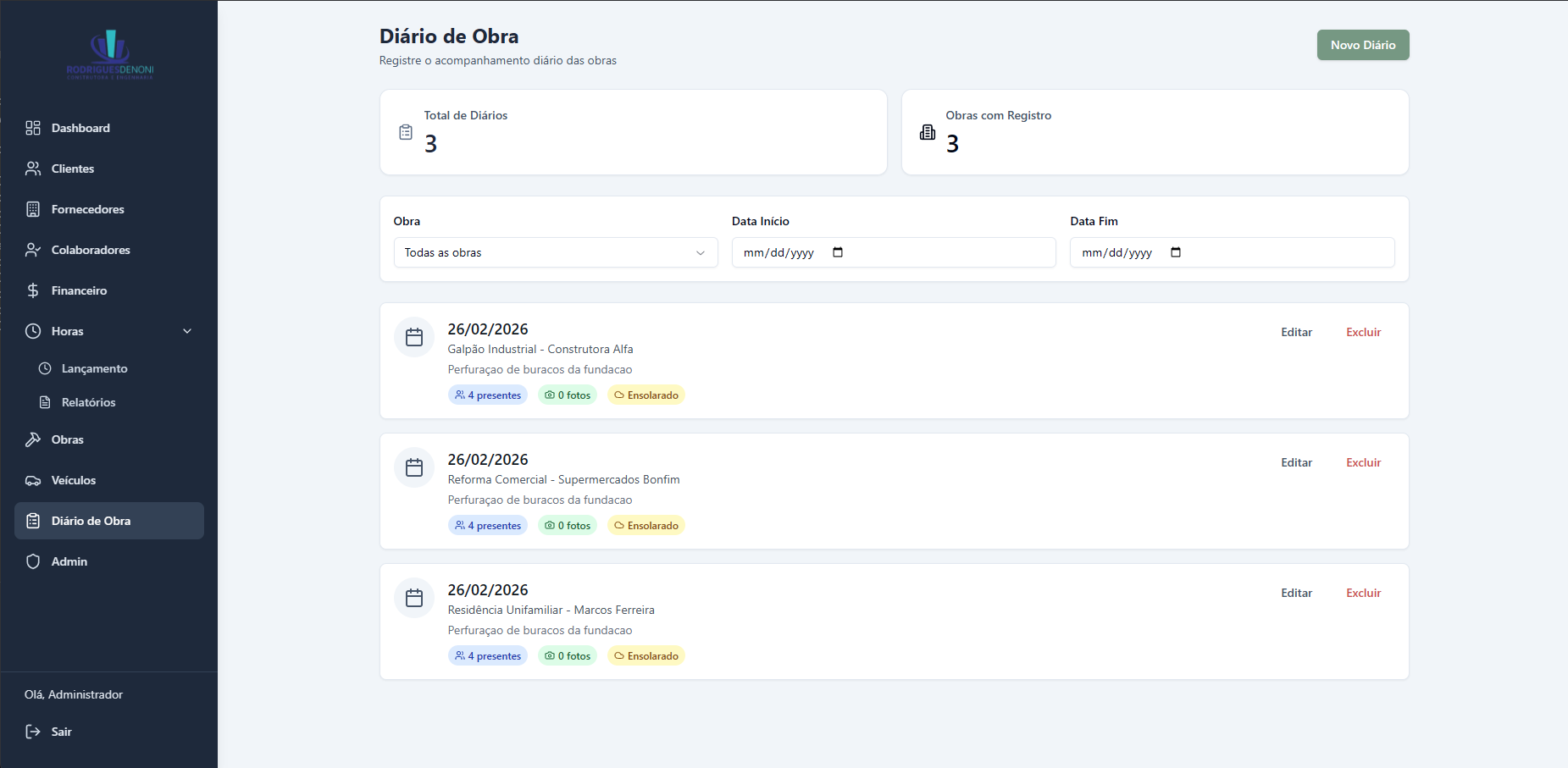 Diário de obras — registro de atividades e ocorrências pelo celular em campo